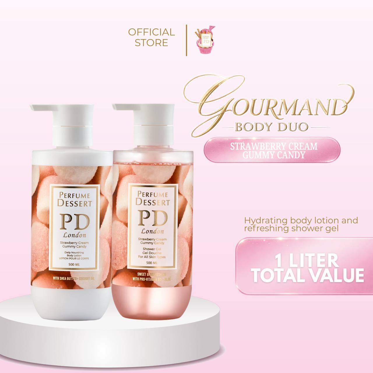 Perfume Dessert Bath & Body Essentials extend our iconic gourmand fragrances into refined daily care. Each formula is designed to cleanse, hydrate, and delicately scent the skin with lasting softness and indulgence.