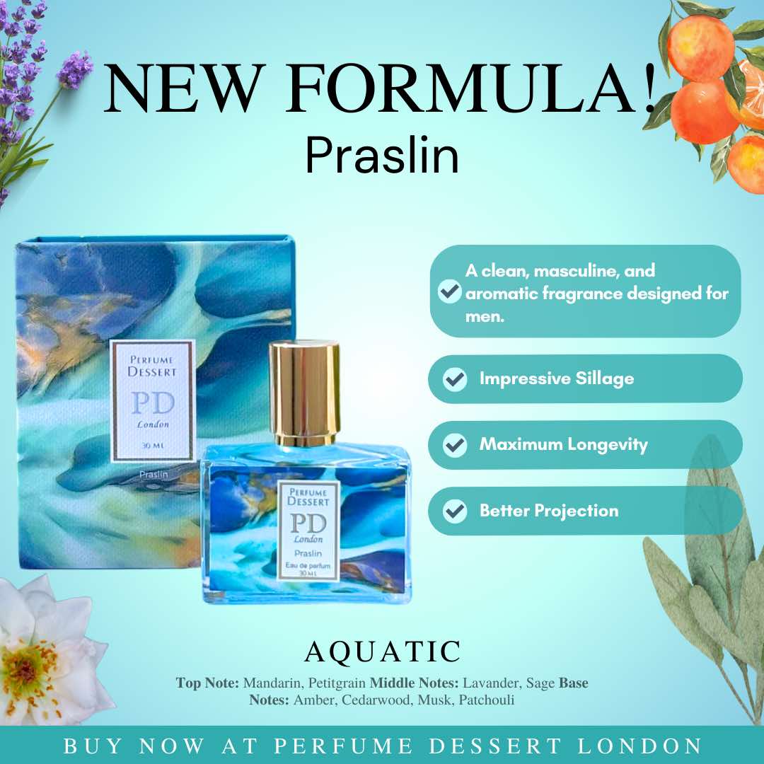 Praslin | New! Niche Formula | LONG LASTING FRAGRANCE | PD Aqua | perfume for men | Aquatic Masculine every day scent | Perfume Dessert London |